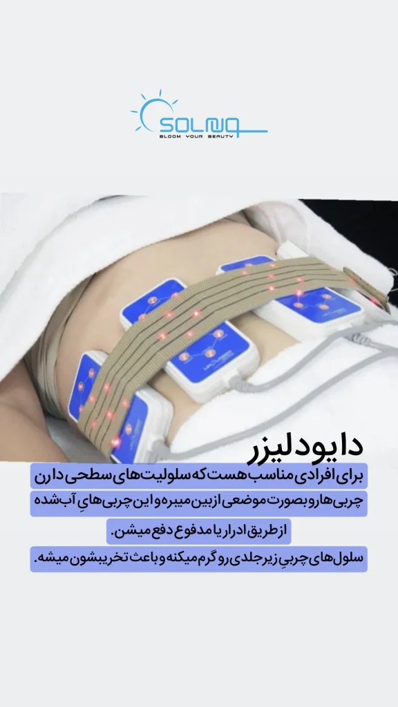 - لیزر درمانی: لیزرهایی که برای ذوب کردن چربیهای زیرپوستی و ایجاد فرم بهتر بدن استفاده میشوند.